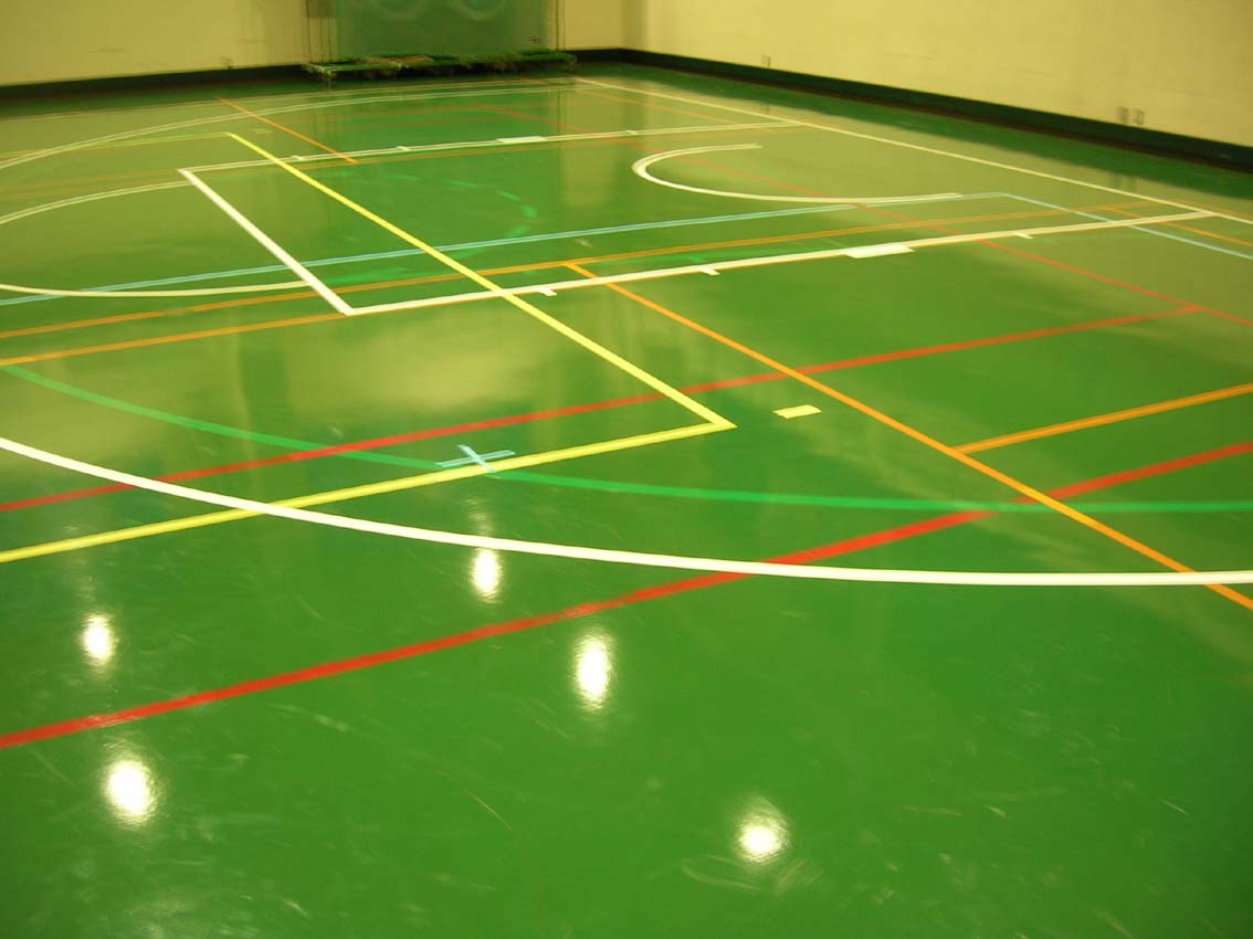 (以前は、体育館の床にビニルテープで引いていましたが、